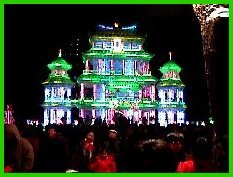 Ice sculptures - made from blocks of ice chainsawed from the Songhua River - have represented such things as castles, towers, the Statue of Liberty, the Great Wall of China, and an onion-domed Russian church. The sculptures fill the city square and glow from the neon tubes of purple, pink, blue and green that shine from inside (See picture).