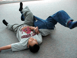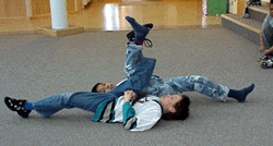 | The player who pulls the other off his back wins. |