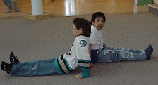 | Count to three and raise inside legs to lock around each others' at the knee, keeping the outside leg extended at all times. |